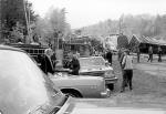 Looking towards Millinocket Lake. In the foreground is Millinocket Police Chief Frank Friel and Wilfred Cyr. Behind Chief Friel is M.F.D. Engine 4 along with fire fighters Paul Montgomery, Milan Thornton, and Tom Montieth.